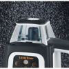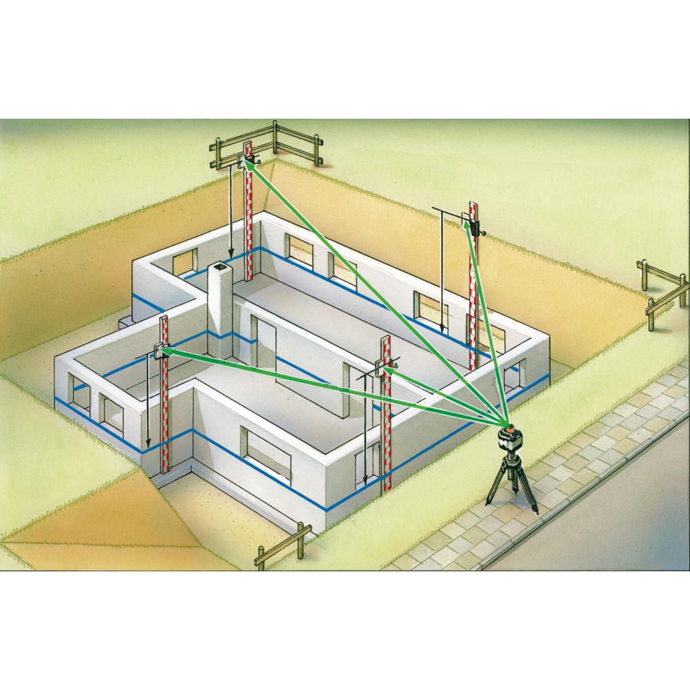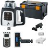 Omschrijving: De volautomatische rotatielaser maakt een nauwkeurige nivellering van horizontale en verticale lijnen en hellingen mogelijk. Voor het eenvoudige loden beschikt het apparaat over een extra referentiestraal. De AntiShake-functie lijnt het apparaat permanent uit, ook als het in beweging is; ideaal voor de snelle inrichting op trillende ondergronden en bij wind. Per afstandsbediening kunnen alle functies tot op een afstand van maximaal 40 m comfortabel worden gestuurd. In geval van externe inwerking schakelt het toestel automatisch uit ter vermijding van meetfouten. Een speciale motorrem zorgt voor een betrouwbare bescherming tijdens het transport. Dankzij de extra lange ontvangsteenheid kan de krachtige ontvanger de laserlijn op grote afstand snel detecteren. Lc-displays aan de voor- en achterkant, felle signaalleds evenals akoestische melodieën geven de hoogte van de laserlijn aan. De digital connection interface dient voor het besturen via een smartphone met Commander app.