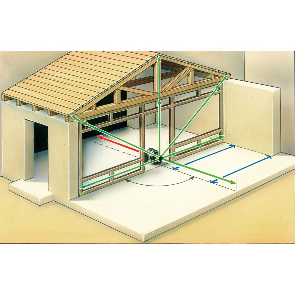 • 90°-referentiestraal voor het loden en uitlijnen van scheidingswanden