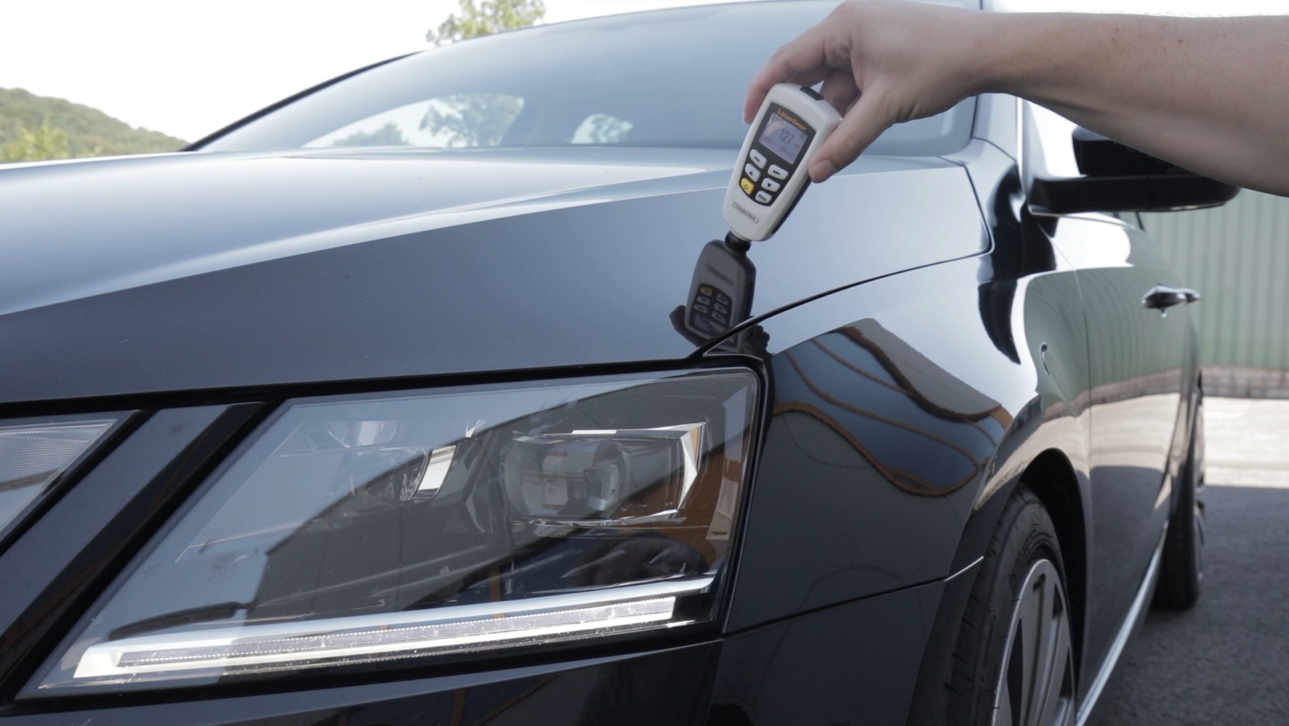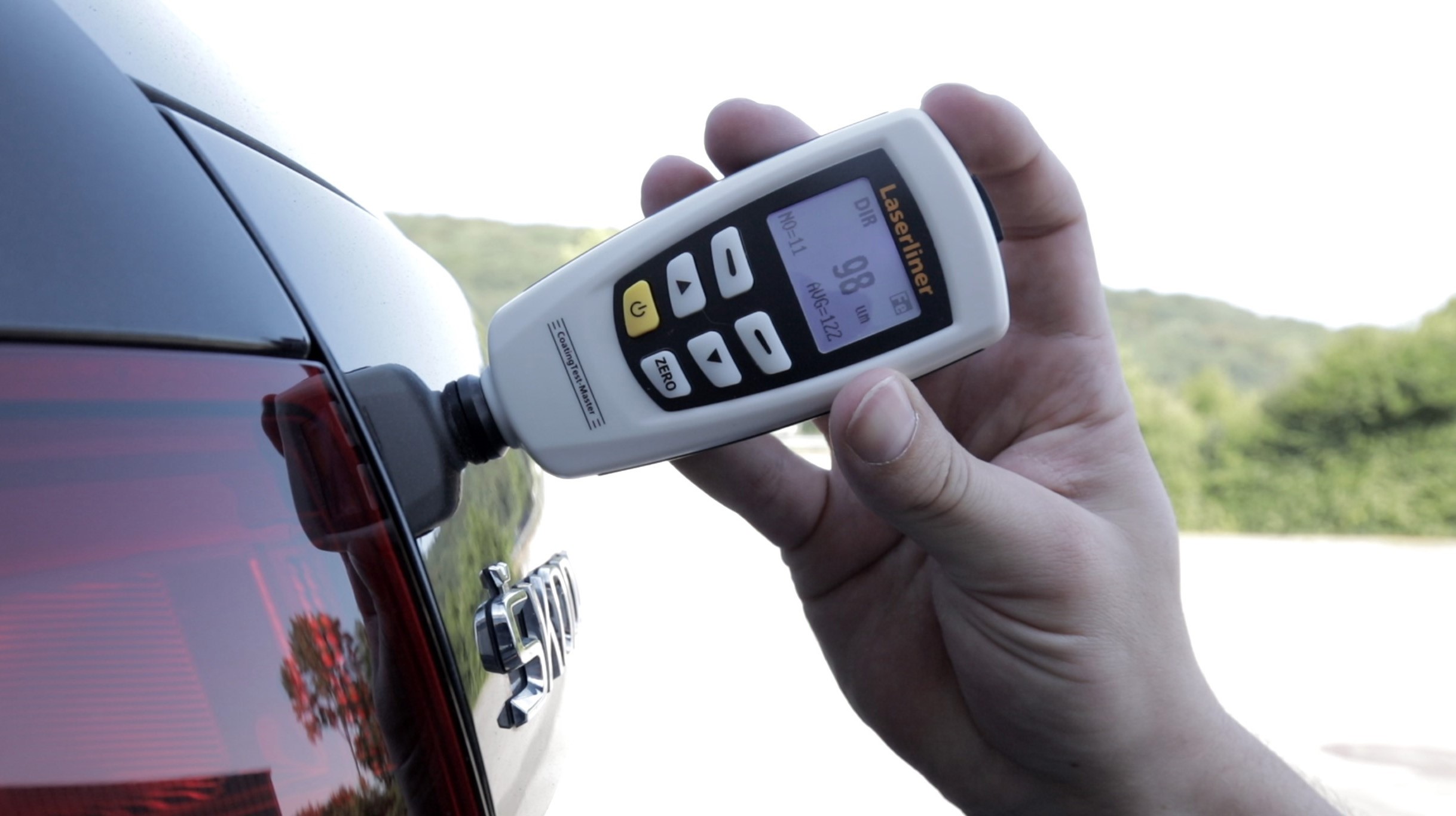 Die Bedienung ist einfach: Der Autolack wird an verschiedenen Stellen gemessen, in dem das Gerät jeweils mit der Vorderseite an den Lack gehalten wird. Innerhalb von Sekunden erscheinen die Werte auf dem Display des kompakten Messgeräts. So wird schnell deutlich, ob es Unterschiede in der Lackdicke gibt. Ist das der Fall, deutet das auf Nachlackierungen oder Spachtelarbeiten hin, was wiederum ein Hinweis auf einen Unfall- oder Korrosionsschaden sein kann.